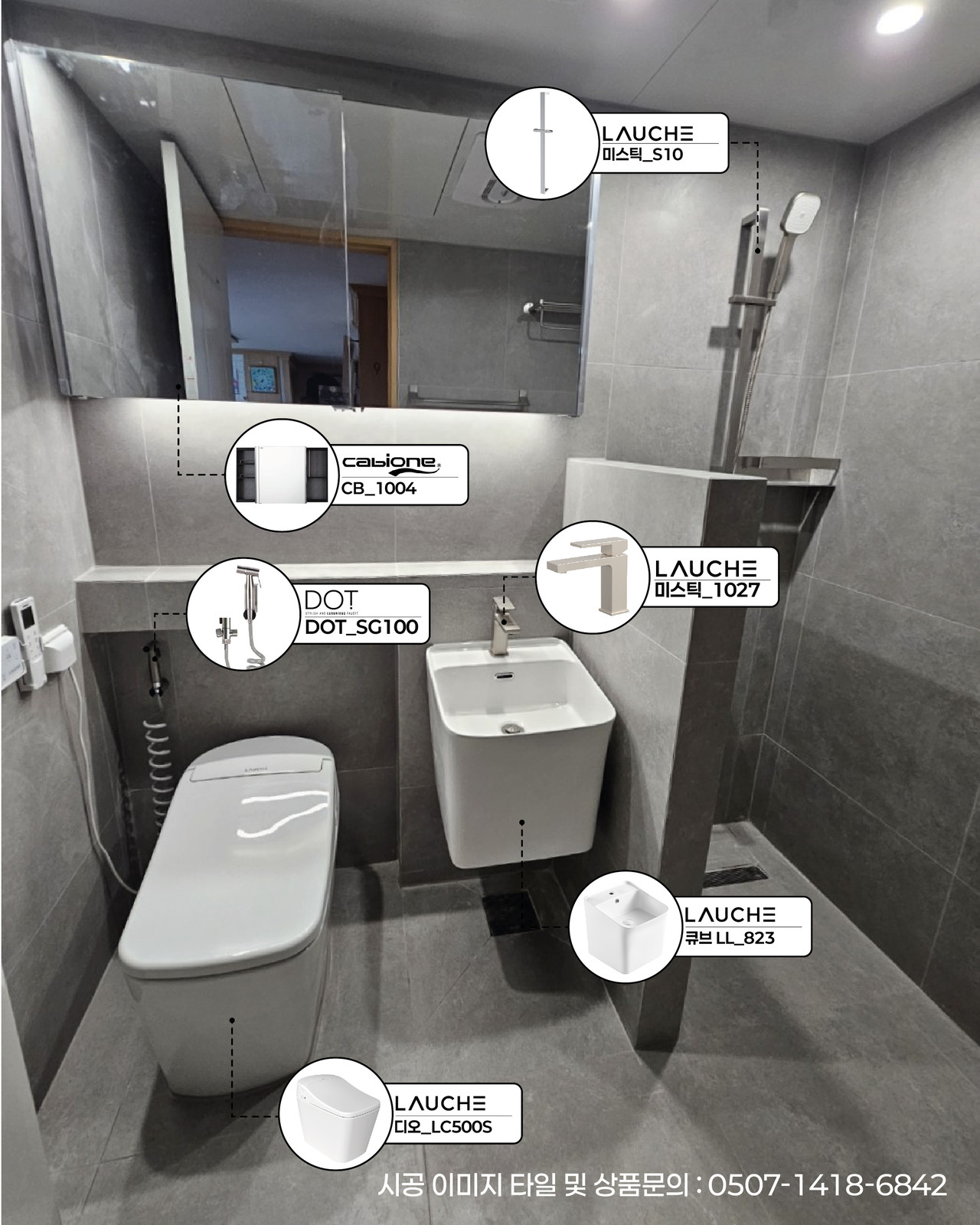 [라우체] 큐브 LL-823 일체형 세면기 (부속별도)