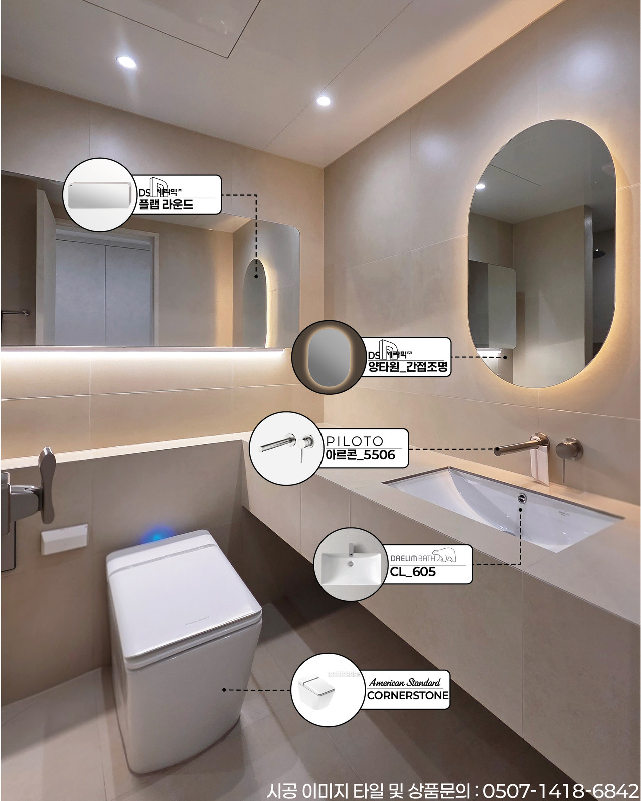 [DS세라믹] 양타원 간접조명거울 (전구,주백,주광) W570 X H800