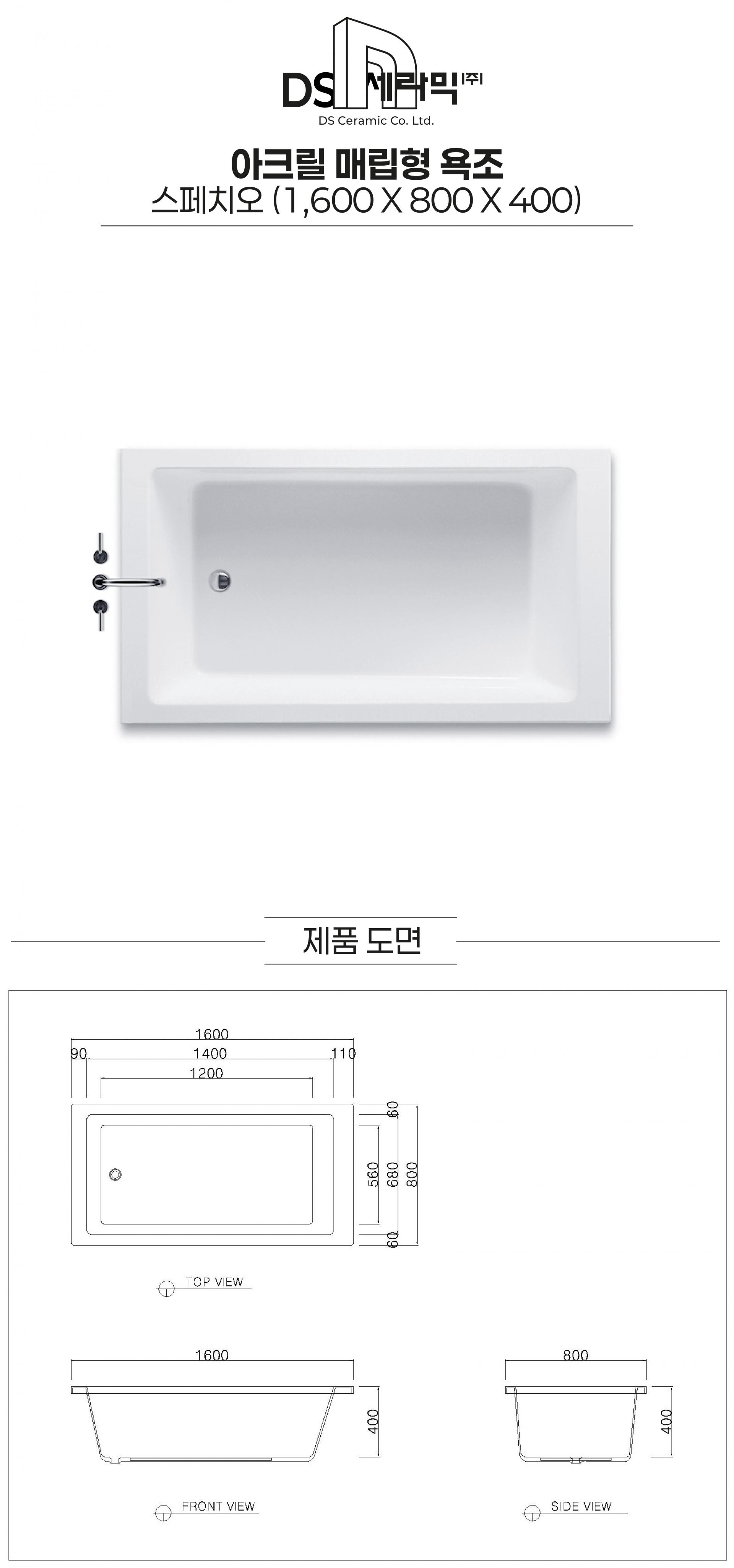 [DS세라믹] 스페치오 (800) 아크릴 매립형 욕조