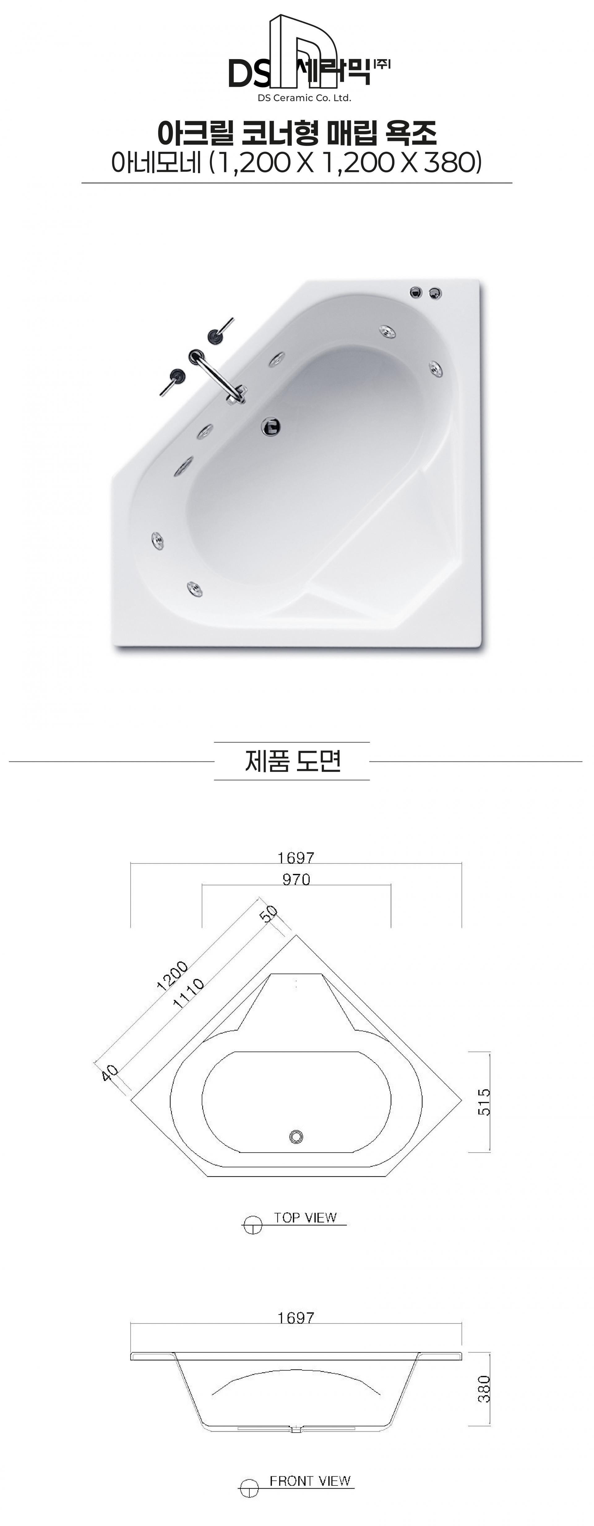 [DS CERAMIC] 아네보네 아크릴 코너형 매립욕조