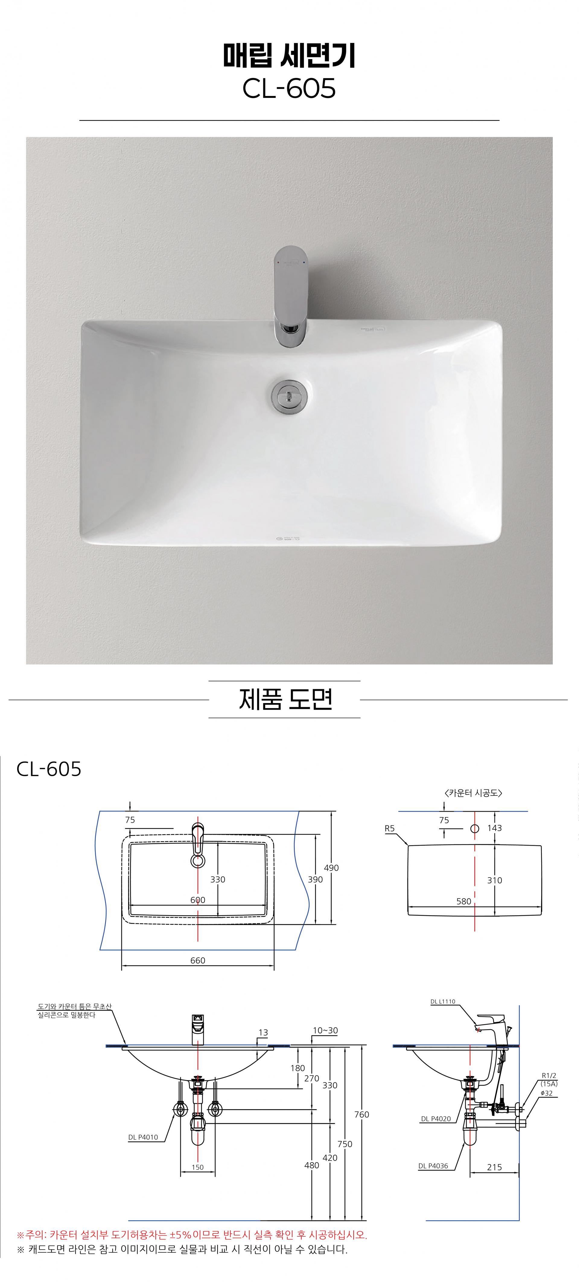 [대림바스] CL-605 매립형 세면기 (부속별도)