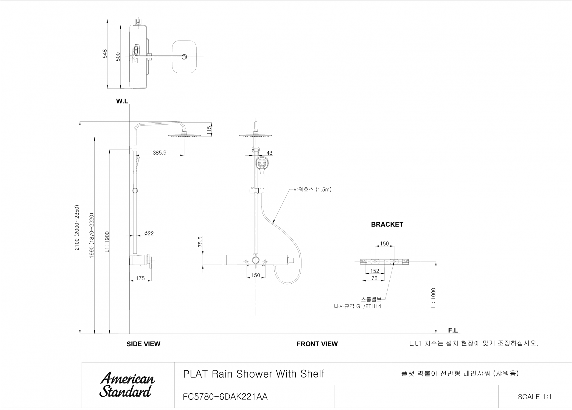 [AMERICAN STANDARD] PLAT NATURAL FC5780 선반형 레인 샤워