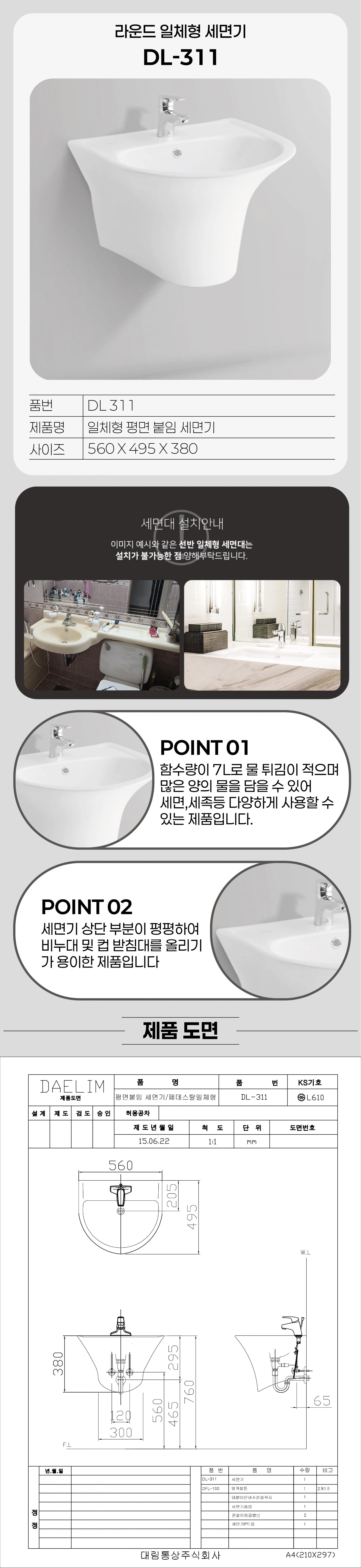 [DAELIM] DL-311 (부속별도) 일체형 세면기 (부속별도)