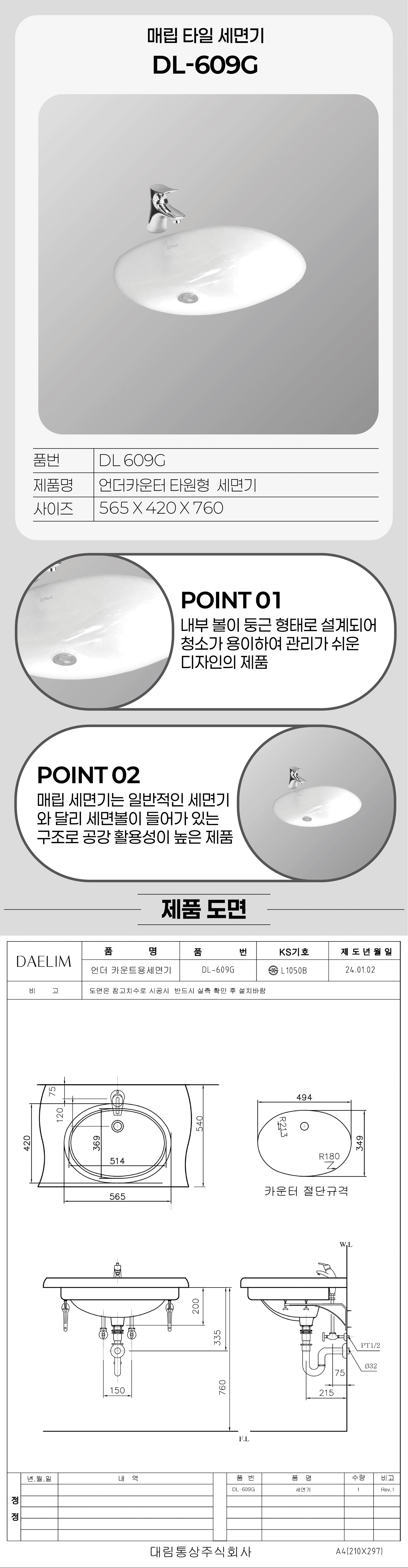 [DAELIM] DL-609G 타일 세면기