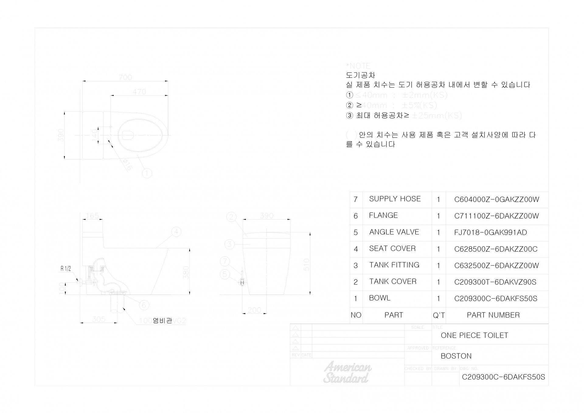[AMERICAN STANDARD] BOSTON 1PC 보스톤 원피스 양변기