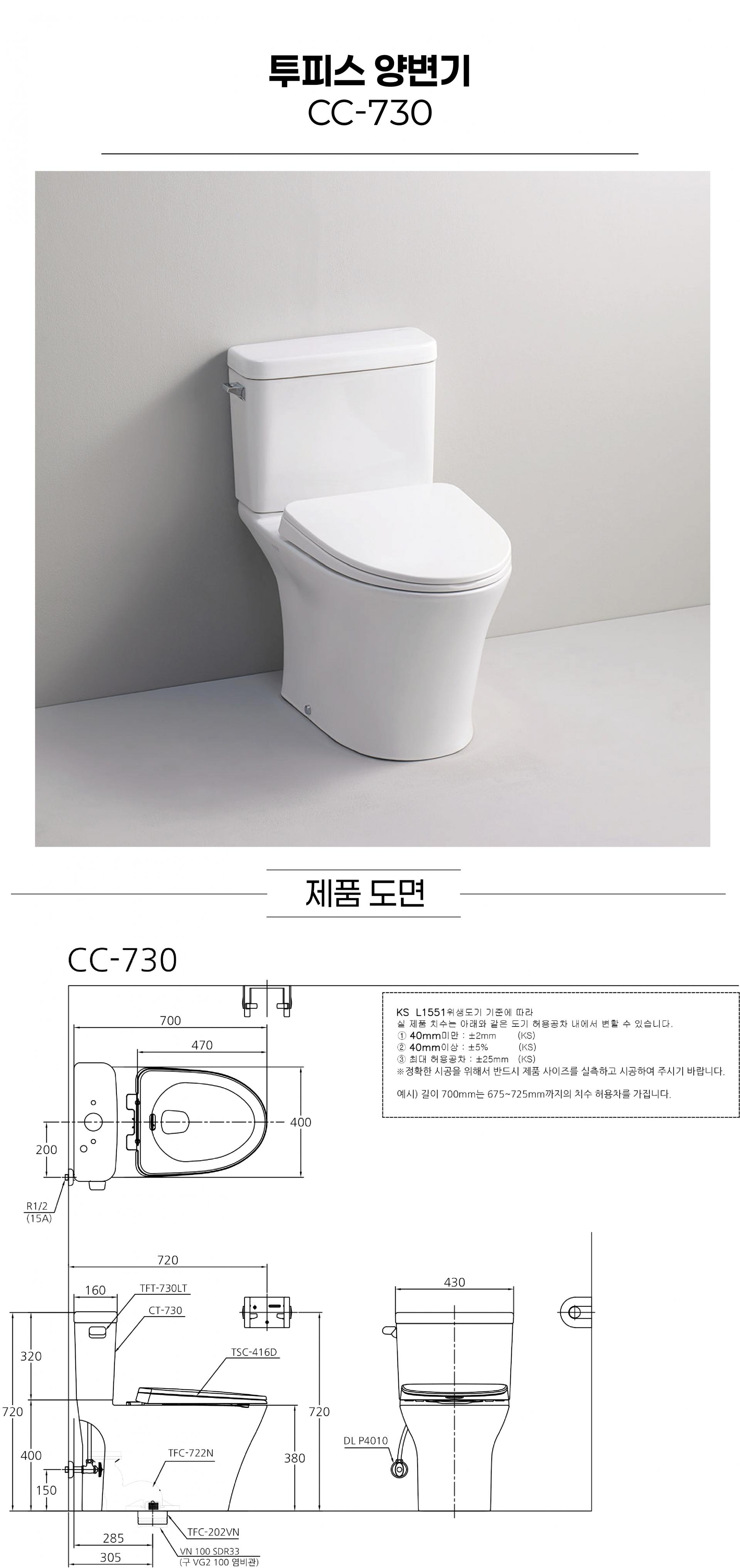 [대림바스] CC-730 투피스 양변기 (부속별도)