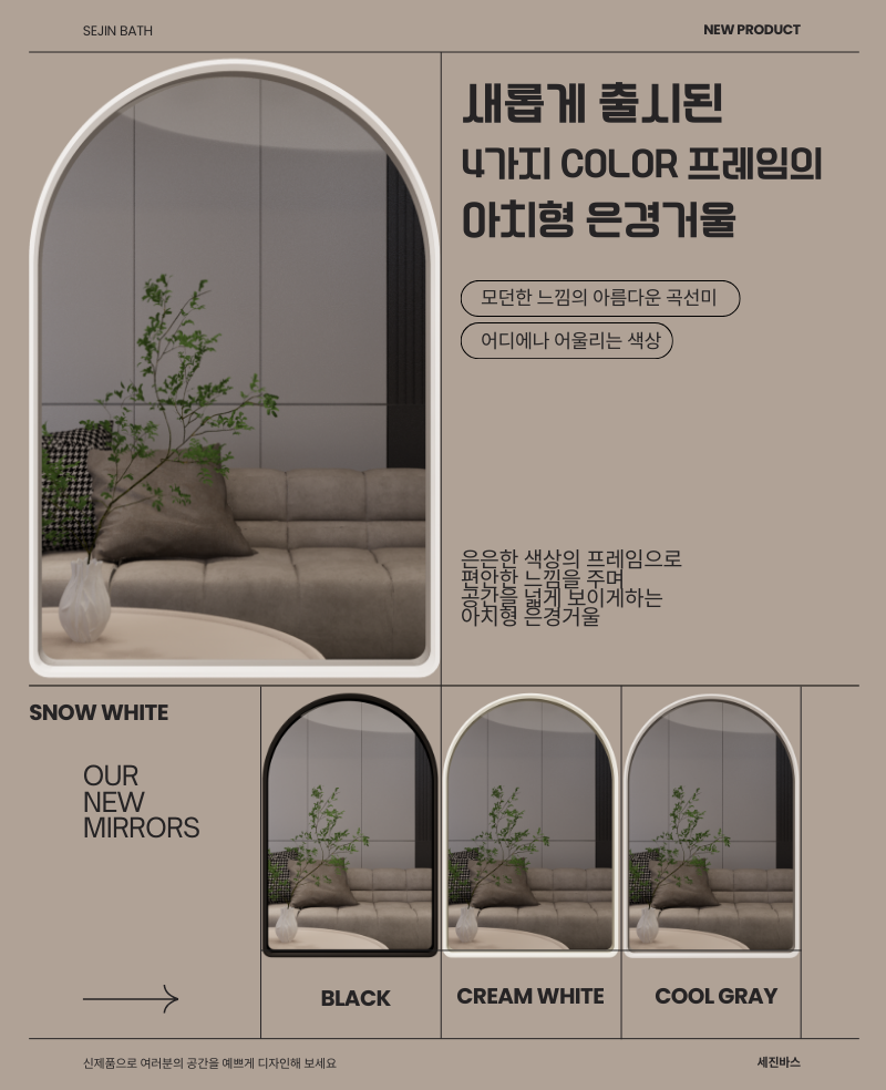 [SEJIN BATH] 미니 하프 라운드 거울 450X600