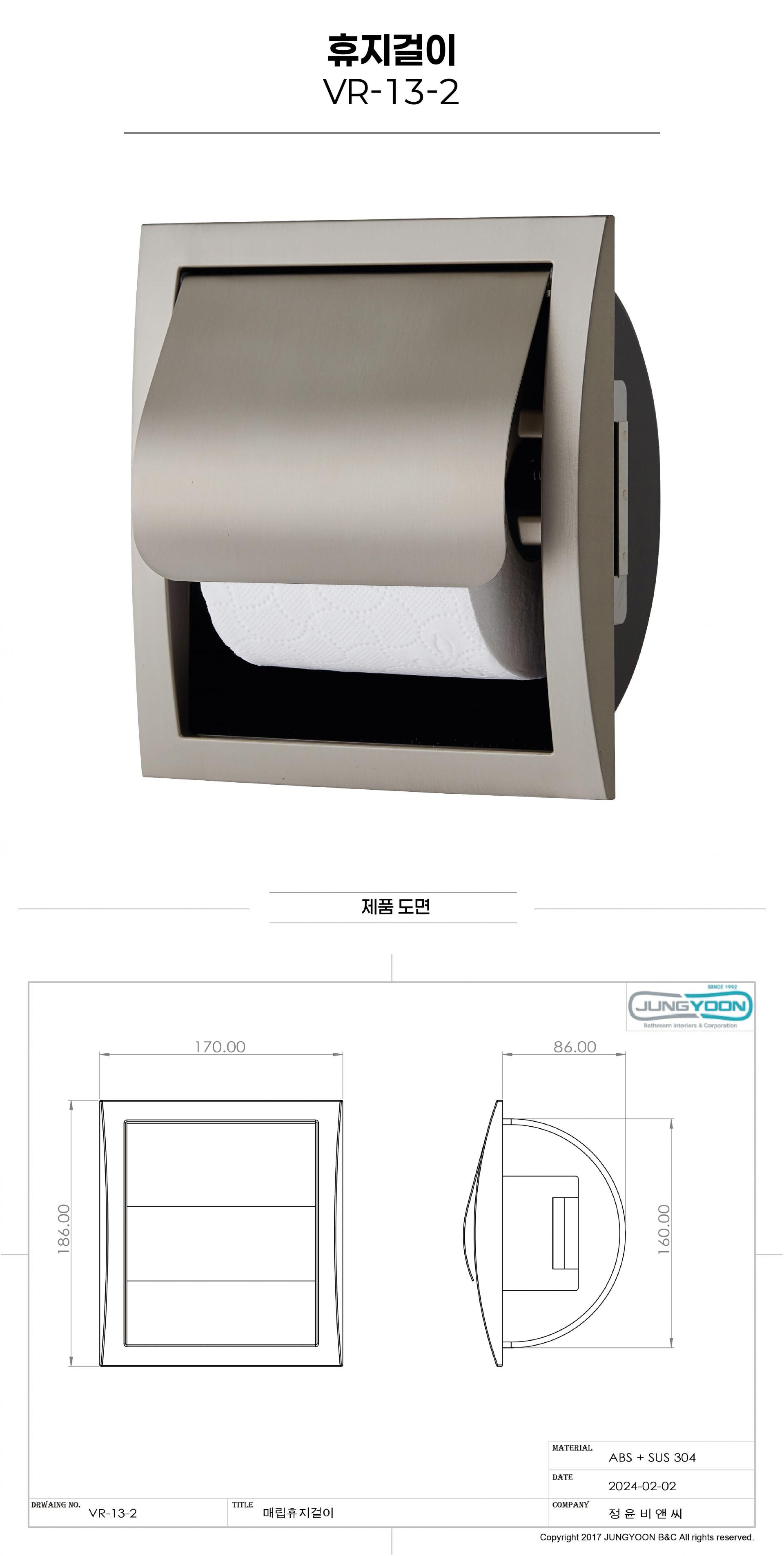 [바라온] VR-8502 (스틸) 트레이 겸용 매립휴지걸이