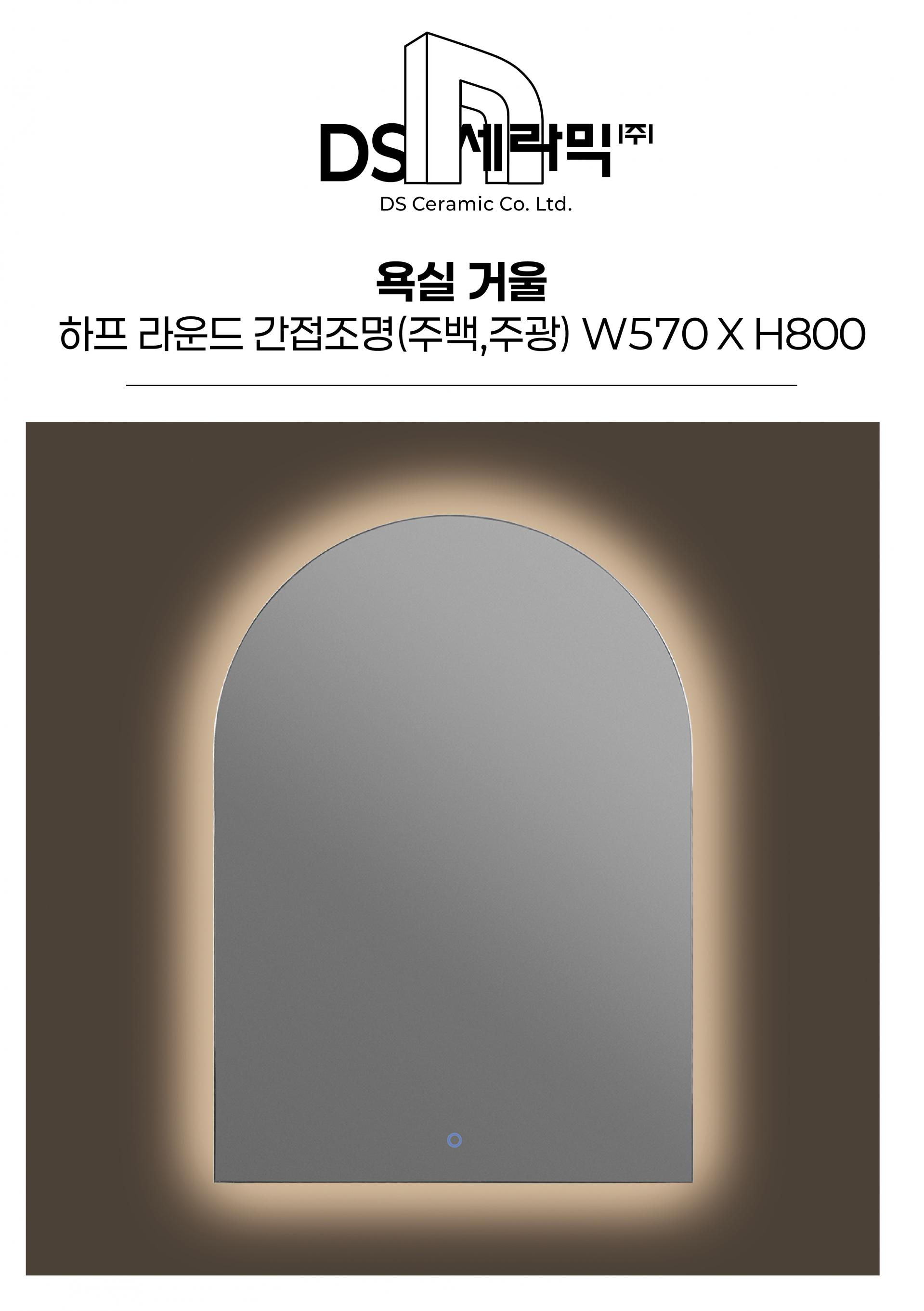 [DS CERAMIC] 하프라운드 간접조명 거울(전구,주백,주광) W570 X H800