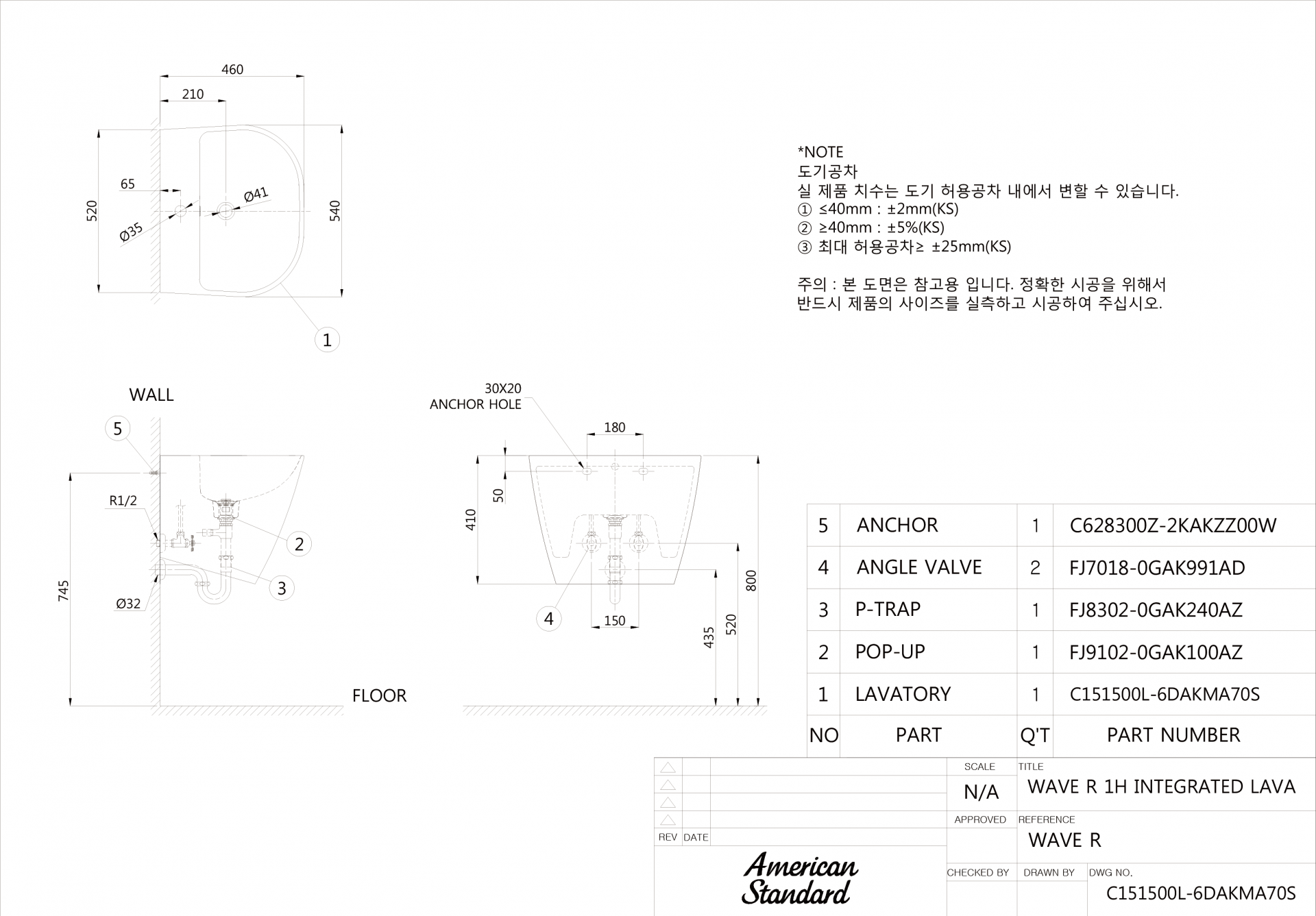[AMERICAN STANDARD] WAVE R 웨이브 R 반다리 일체형 세면기