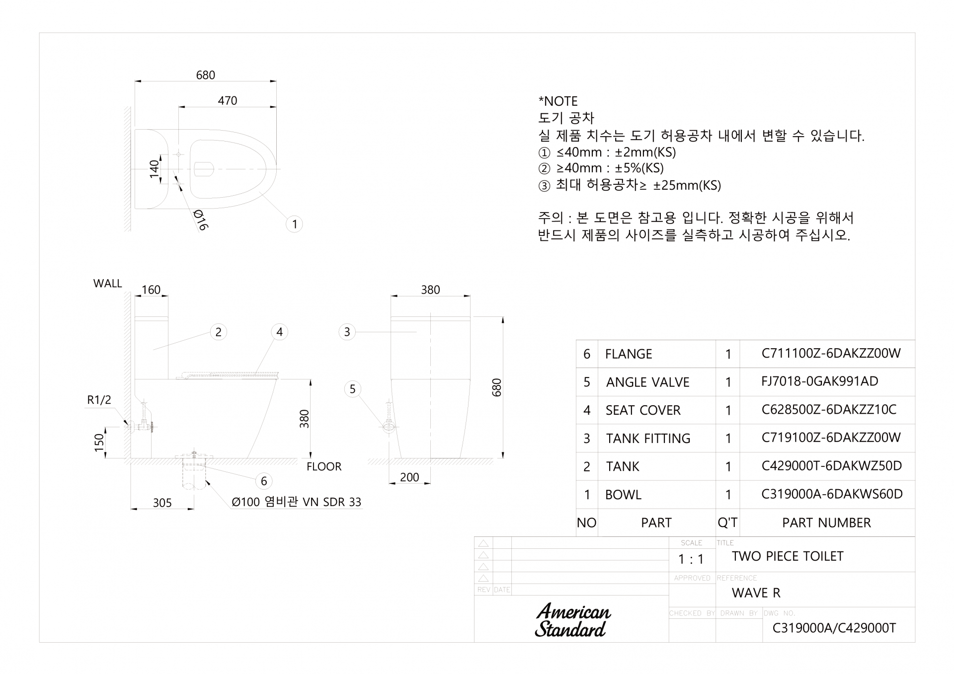 [AMERICAN STANDARD] WAVE R 2PC 웨이브 R 투피스 양변기