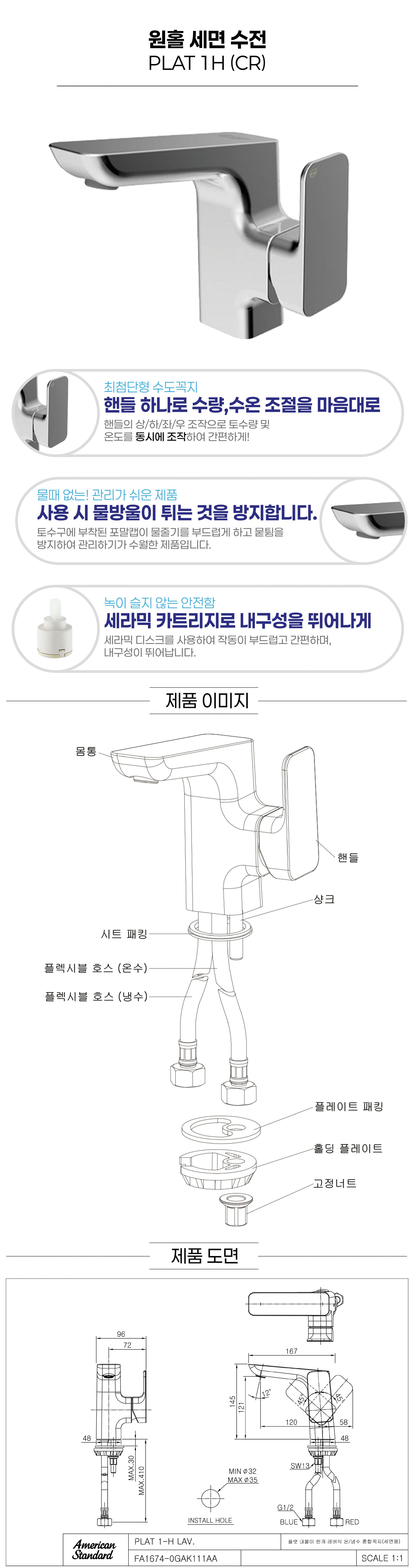 [AMERICAN STANDARD] PLAT 1H 플랫 세면수전