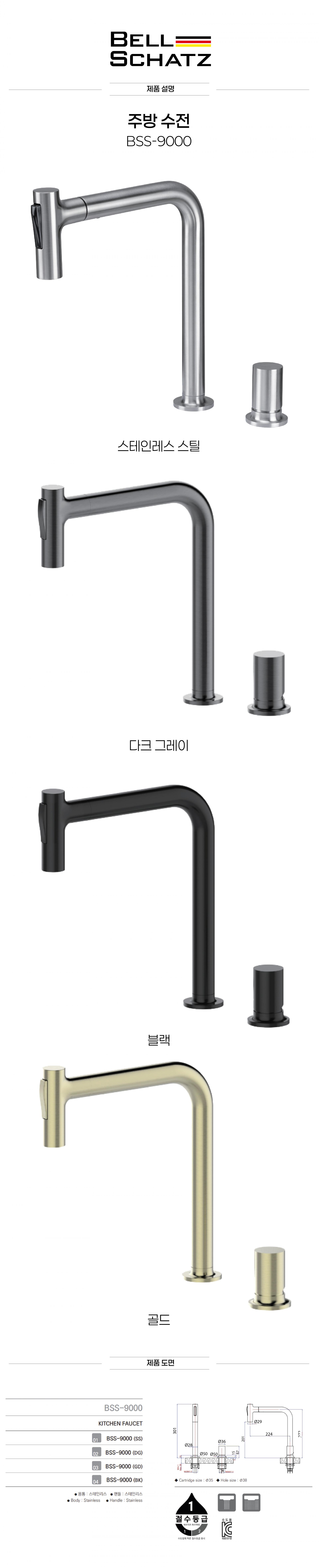[BELLSCHATZ] BSS-9000 (다크그레이) 주방수전