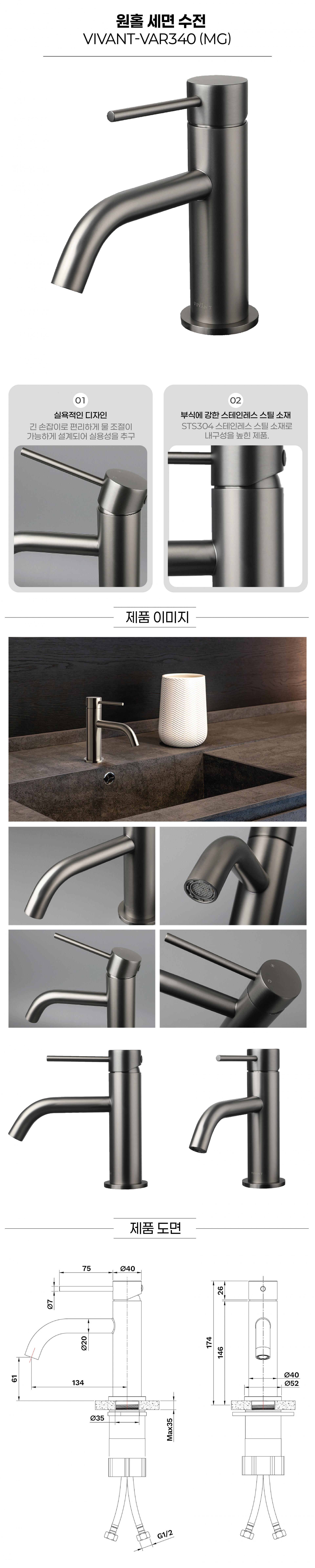 [트랜드] VIVANT-VAR340 (매트그레이) 원홀 수전