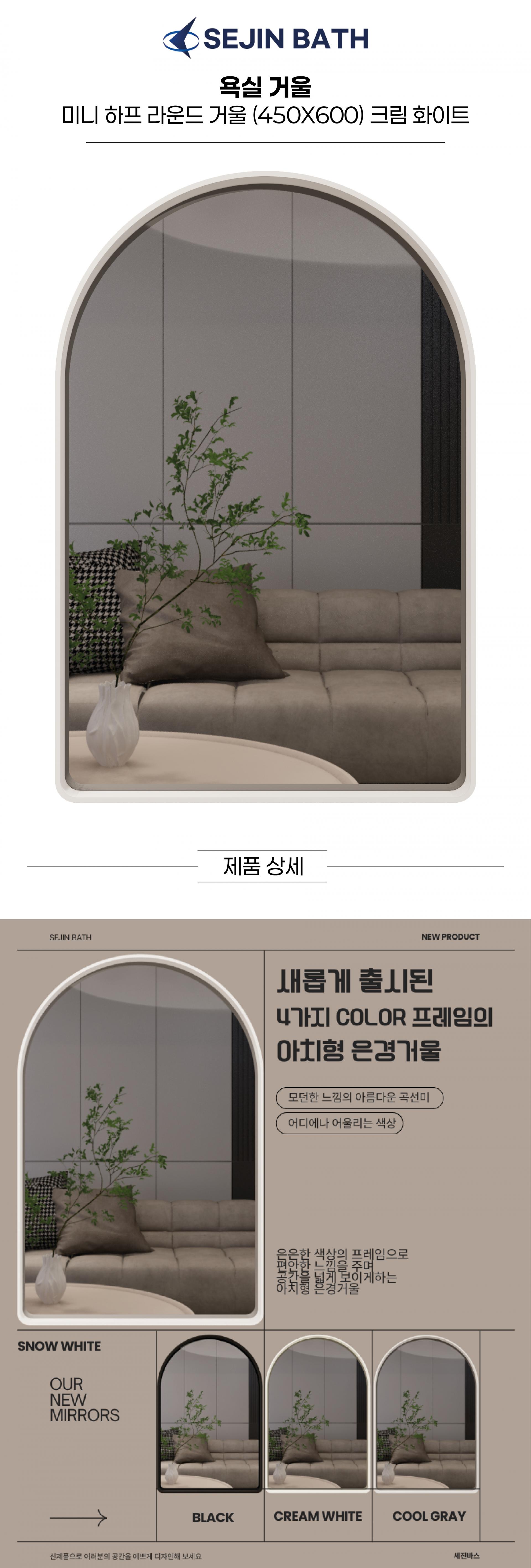 [SEJIN BATH] 미니 하프 라운드 거울 (크림 화이트) 450X600