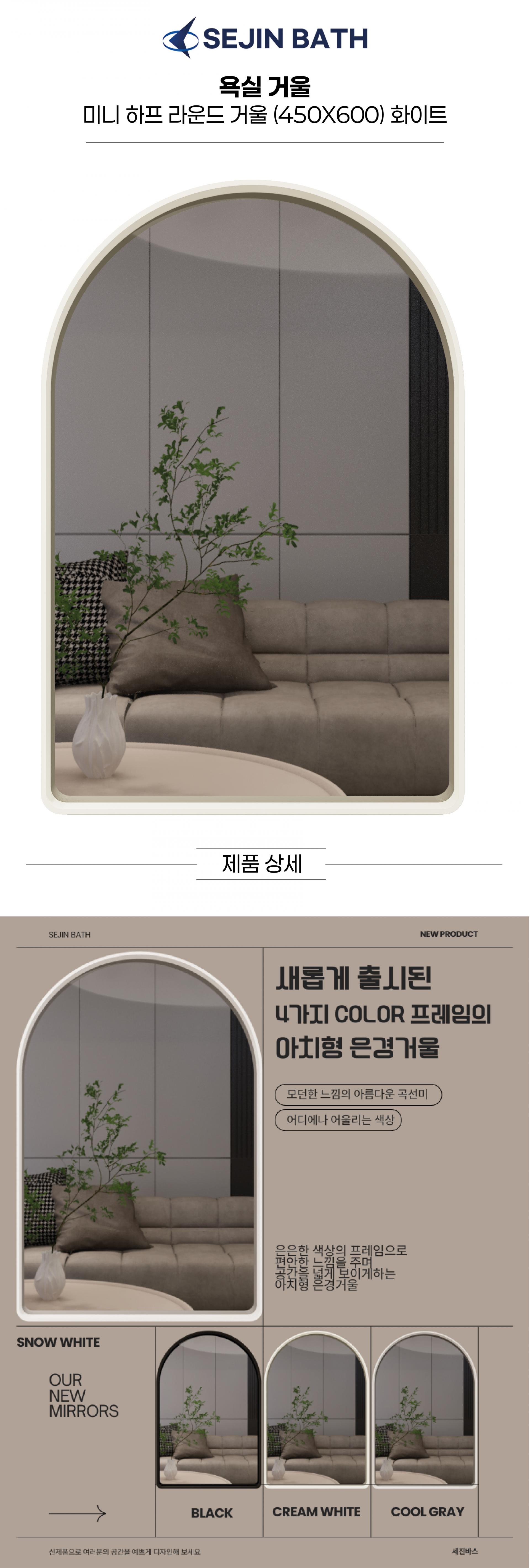[세진바스] 미니 하프 라운드 거울 (화이트) 450X600