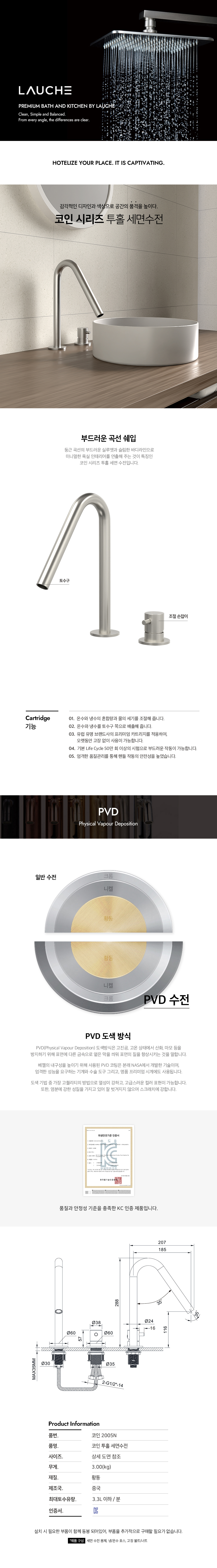 [LAUCHE] 코인 2005 N 원홀 세면수전 (니켈)