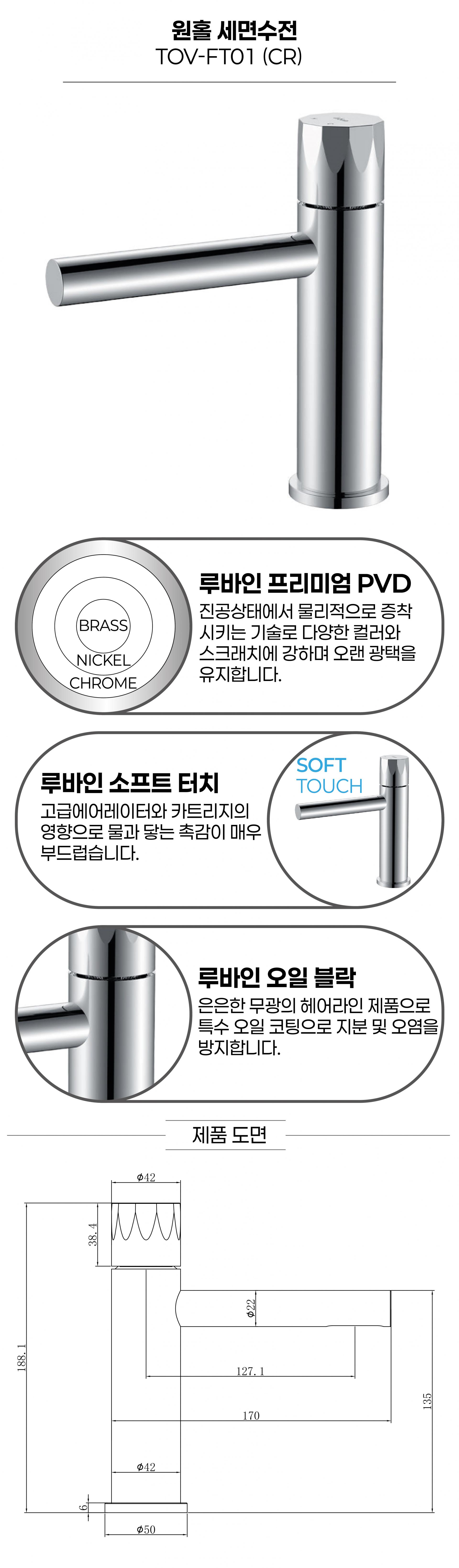 [루바인] TOV-FT01S/P (크롬) 원홀 세면수전