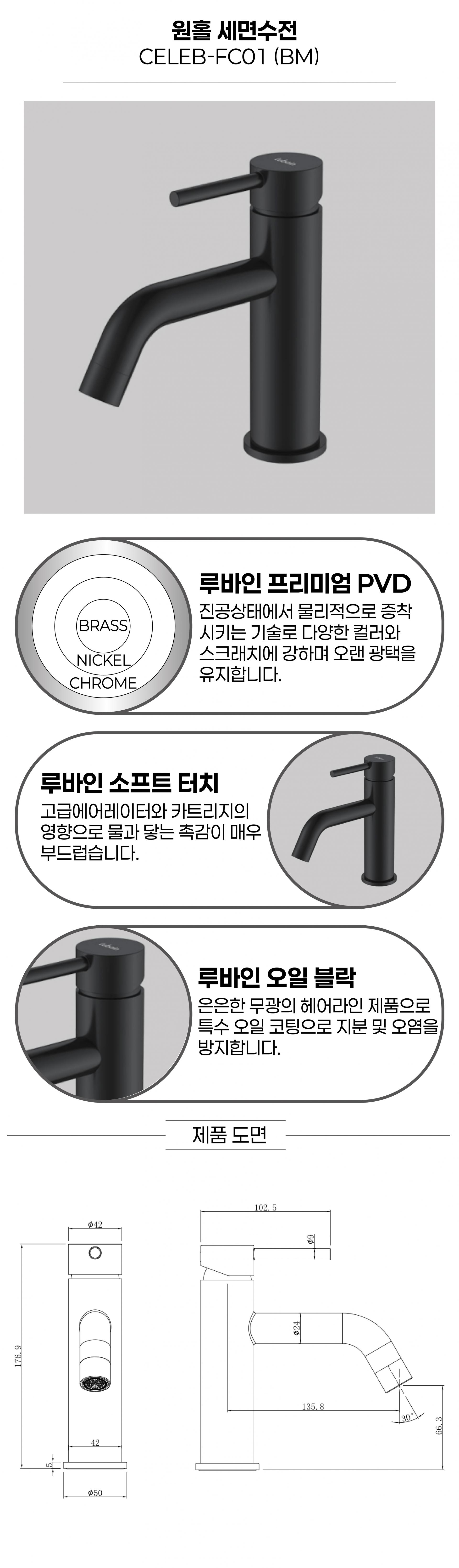 [루바인] CELEB-FC01B/M (블랙 매트) 원홀 세면수전