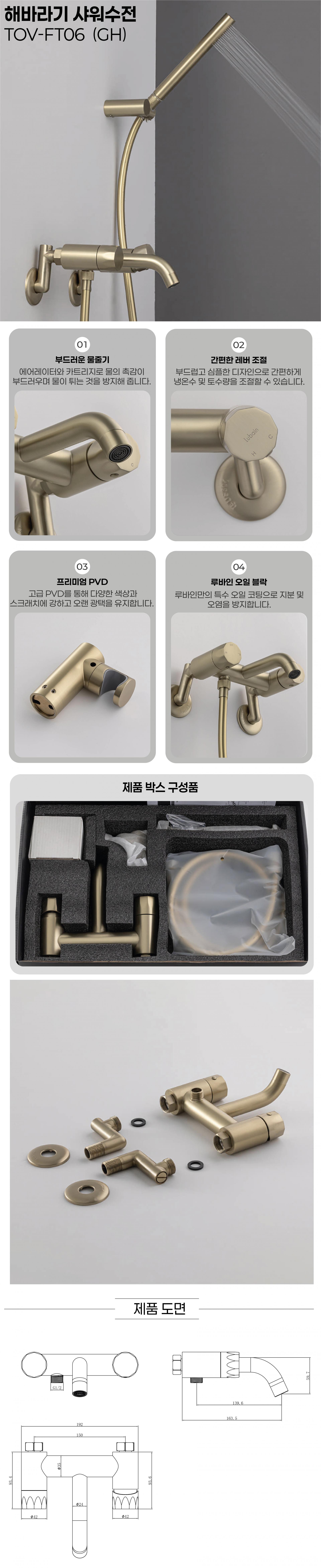 [루바인] TOV-FT06G/H (골드 헤어라인) 욕조 샤워수전