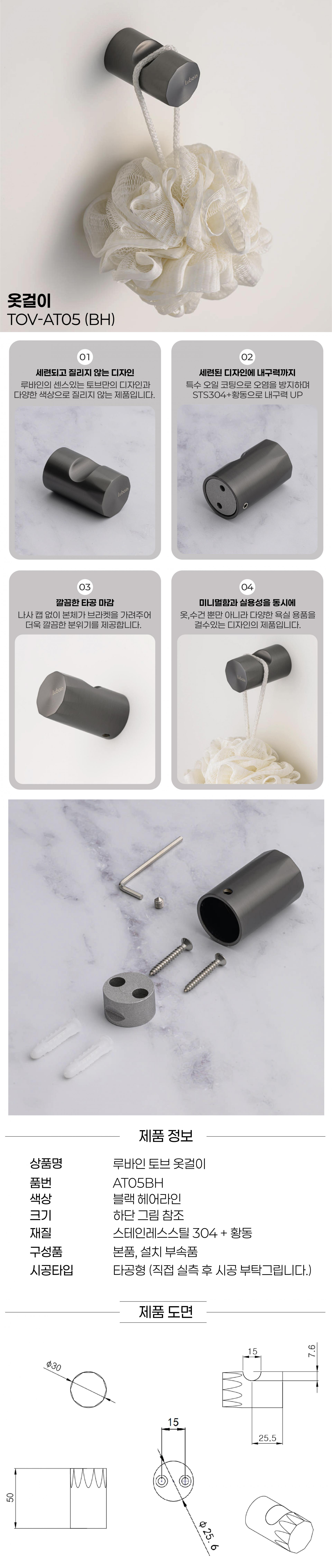 [루바인] TOV-AT05B/H (블랙 헤어라인) 옷걸이