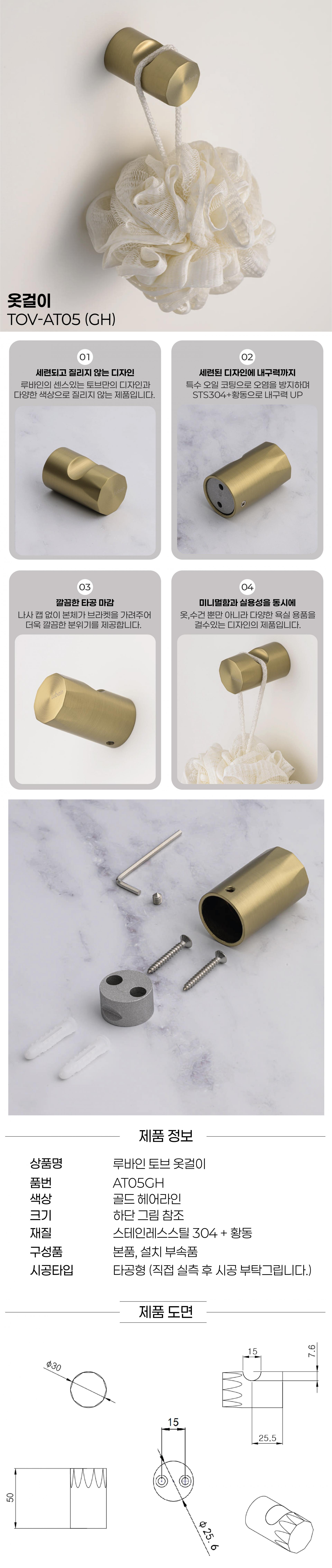 [루바인] TOV-AT05G/H (골드 헤어라인) 옷걸이