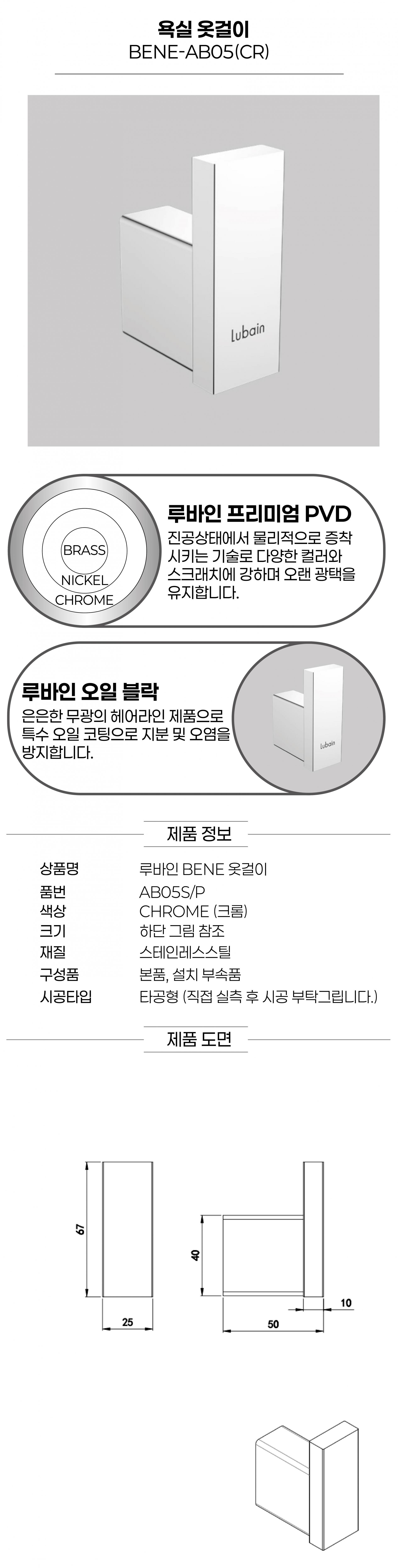 [LUBAIN] BENE-AB05S/P (크롬) 옷걸이