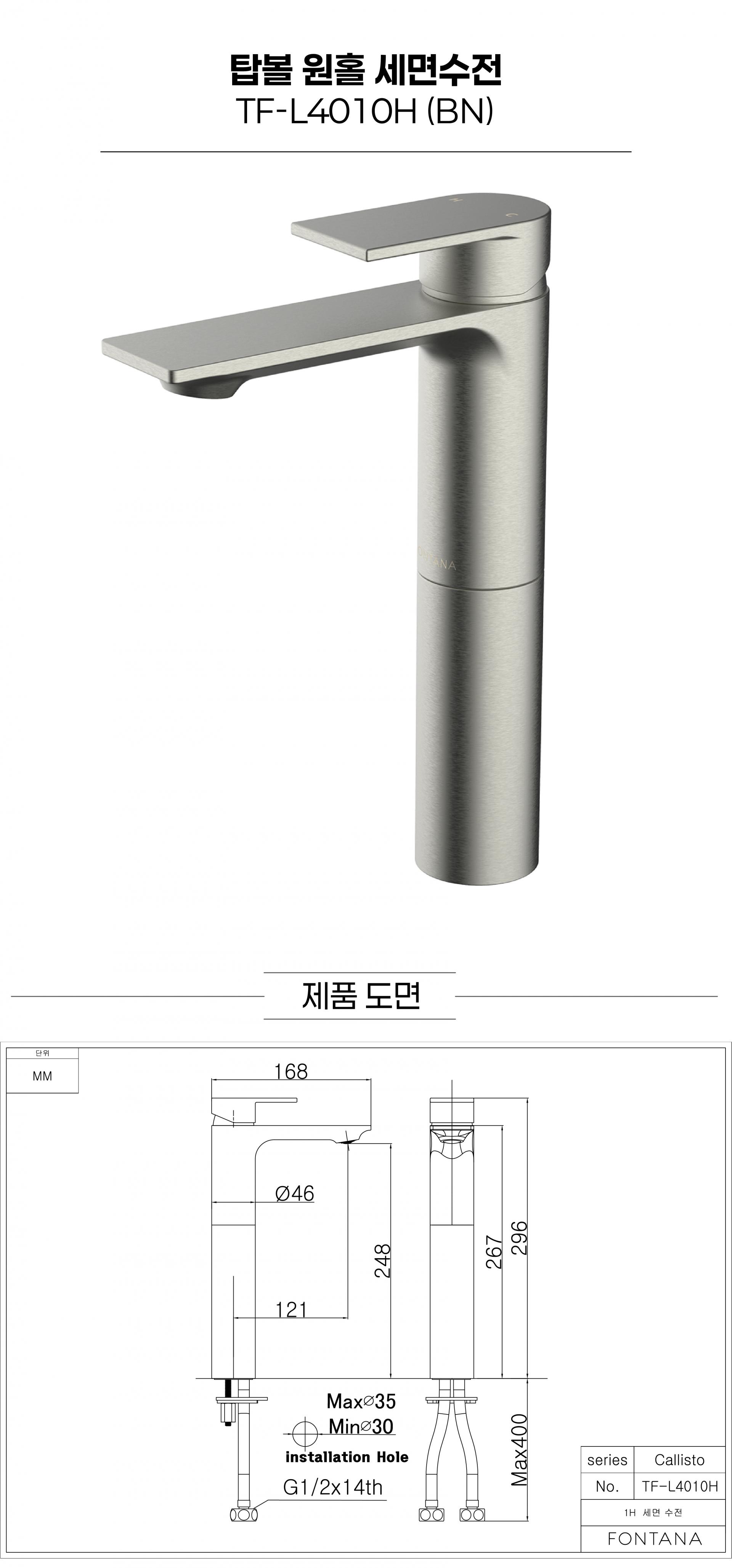 [FONTANA] TF-L4010H (브러쉬드 니켈) 탑볼 원홀수전