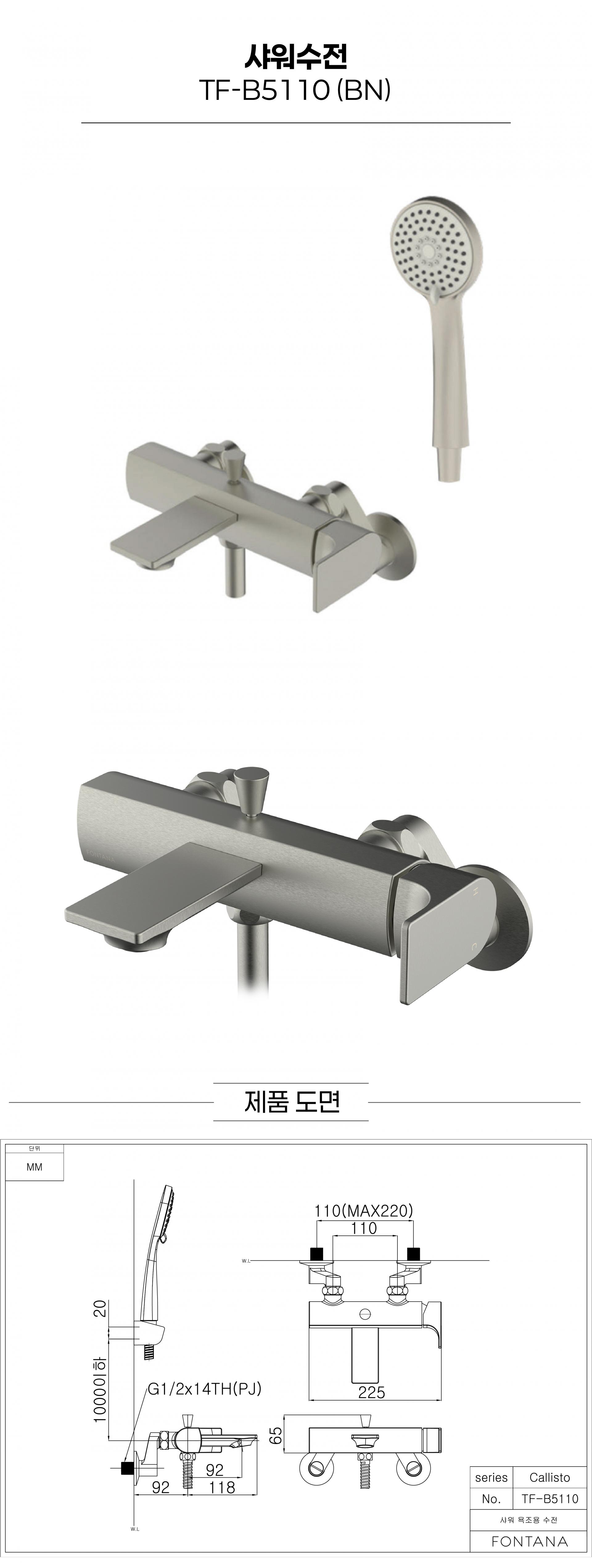 [폰타나] TF-B5110 (브러쉬드 니켈) 욕조 샤워수전